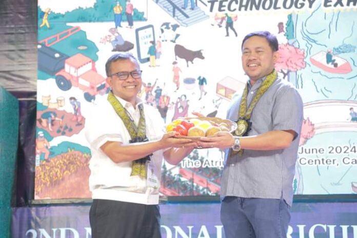 DEPARTMENT of Agriculture 10 director Apollo Pacamalan hands out a token to visiting Sen. Mark Villar during the opening of the 2nd National Agriculture and Fisheries Technology Convention held June 4 at Limketkai Atrium in Cagayan de Oro City. PHILIPPINE INFORMATION AGENCY 10 PHOTO
